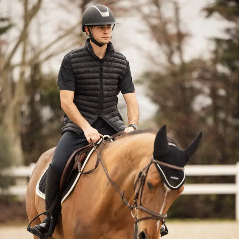 The B Vertigo Simon Men’s Ultralight Padded Vest is the perfect year-round riding essential, combining warmth, comfort, and freedom of movement in a sleek and classic design. This vest is ultra-lightweight yet padded for just the right amount of insulation, making it ideal for layering on cool mornings or transitional weather. The elastic side panels with soft fleece offer a flexible fit, ensuring maximum comfort whether you’re riding, training, or working around the stable.