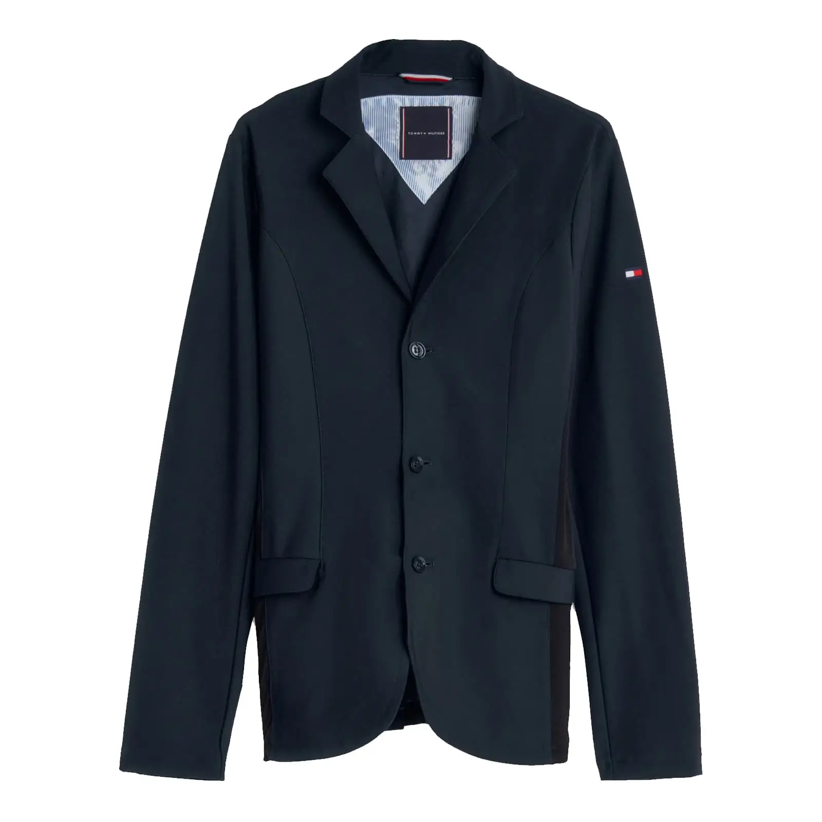 Elegant yet athletic, the jacket includes two discreet zippered pockets, dual hidden back slits for improved movement, and a contrast inner lining for added sophistication. The embroidered logo on the left arm is FEI compliant, making it suitable for official tournaments. Whether in the ring or on the podium, this jacket delivers the performance you need with the timeless Tommy Hilfiger look you love.